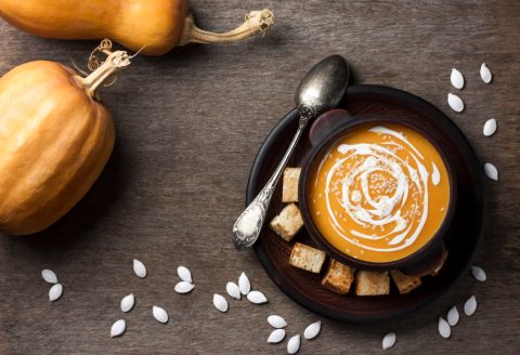 pumpkin-soup-with-cream-sesame-seeds-with-croutons-wooden-surface