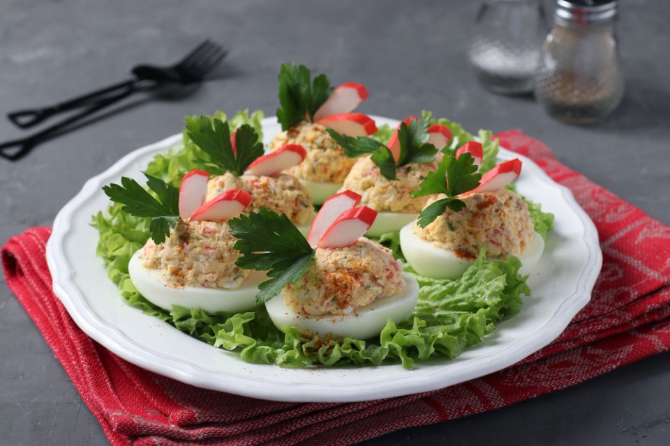 Наполнете ги јајцата со подготвената смеса, па декорирајте по желба.