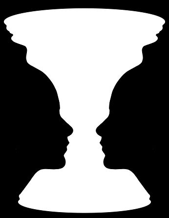 Значи, кога ќе ја погледнете оваа слика, вашиот мозок гледа или две лица или вазна – невозможно е да се видат и двете истовремено. Во суштина, вашиот ум треба да одлучи каква боја се фигурите и заднината. Ако претпоставите дека белиот дел е фигурата, а црниот е заднината, ќе видите вазна. Ако го погледнете црниот дел како фигура и белиот дел како заднина, ќе видите две лица.