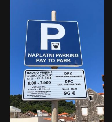 Имено, тиктокерката Саја од Црна Гора сподели видео на кое се гледа табла со цени за паркирање на брегот на Корчула, на која е наведено дека еден ден паркирање чини 96 евра.