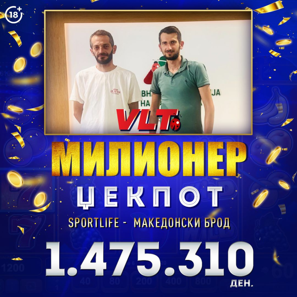 Добивката вредна 1.475.310 денари е освоена на видеолотариските терминали во Спортлајф Трејд во Македонски Брод на 27.07.2025