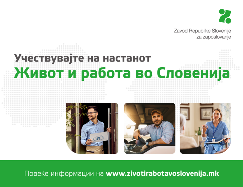 За сите заинтересирани за живот и работа во Словенија, Заводот за вработување на Република Словенија ги организира истоимените настани, оваа недела, од 16-ти до 19-ти јуни, во Куманово, Прилеп и Охрид.