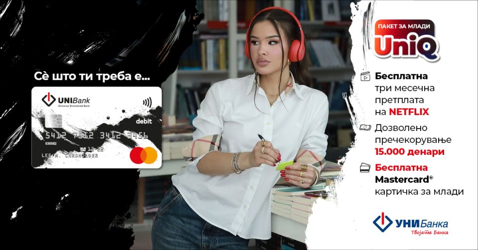 Со цел да поттикне финансиска независност кај младите и можност за безбедно и едноставно плаќање УНИБанка АД Скопје воведува уникатен пакет наречен UniQ. Пакетот е за млади од 15 до 25 години и нуди многу поволности.