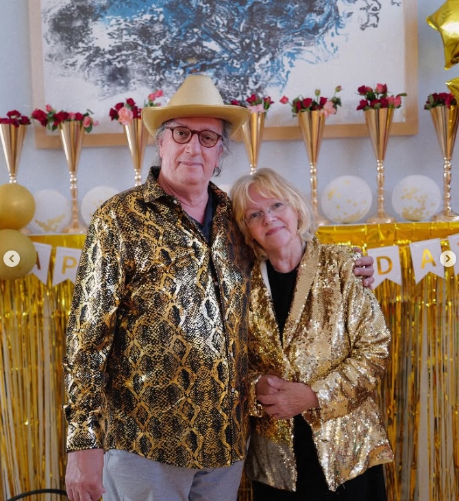 И двајцата беа во златни тонови, исто како ќерките на познатата актерка, Лара и Лили, кои уживаа во топлата семејна атмосфера.