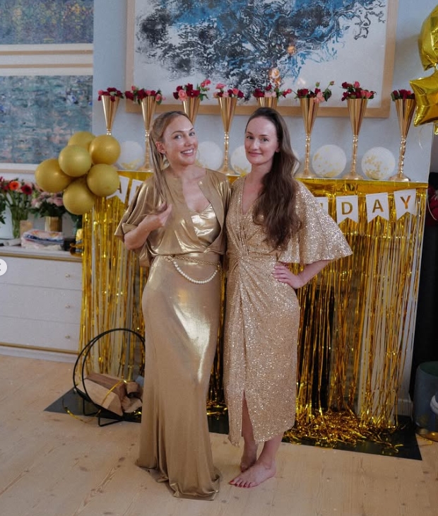 Славеничката блескаше во златен фустан, а позираше и со својата сестра Џанан. Сестрата на познатата Хурем исто така имаше фустан во златни тонови, а двете позираа боси, докажувајќи колку опуштена била атмосферата во домот по повод нејзиниот роденден.