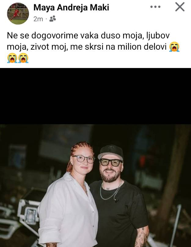 -Не се договоривме вака, душо моја, љубов моја, живот мој. Ме скрши на милион делови, напиша Маја на својот Фејсбук профил.