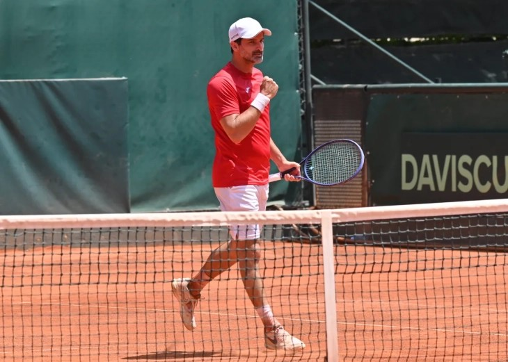 Македонската тениска репрезентација поведе во дуелот од третото коло против Молдавија со 1:0 откако Стефан Мицов успеа да го победи Андреј Горбан со 2:0 во сетови (6:3 и 6:4) во меч што траеше 97 минути.