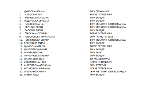 Во списокот на Новеска се најдоа 21 ракометарка, од кои дваесет се од домашните екипи, а една доаѓа од шведски Малме.