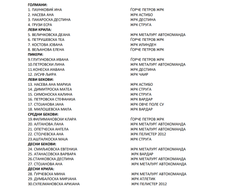 Во списокот на Новеска се најдоа 21 ракометарка, од кои дваесет се од домашните екипи, а една доаѓа од шведски Малме.