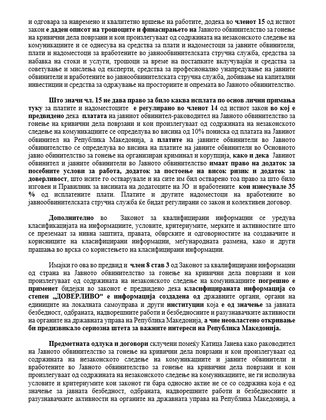 Веднаш да напомнам дека општествен  интерес е со факти да се обзнани ограбувањето на буџетски пари од специјалните јавни обвинители и кривичната пријава за случајот популарно наречен “бонусите на специјалните јавни обвинители“ и да се разобличат институциите и носителите на јавни и одговорни функции кои се обидоа да го прикријат овој кривично правен настан..