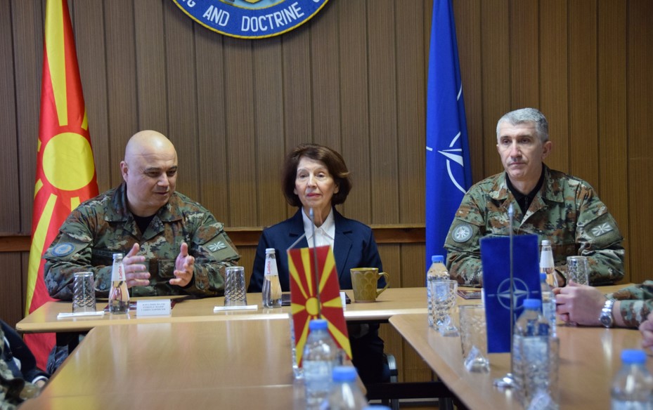 -Посебно им посакувам на жените во Армијата да покажат и докажат дека се исто толку компатибилни колку и мажите, дека имаат цврста решеност, дека имаат цврста волја, дека се љубопитни, дека знаат и дека нема цел и нема задача што не можат да ја извршат. На право место сте, покажувате и сами дека верувате дека оваа е добар избор. Јас ве подржувам во изборот и ви посакувам успешна војничка кариера, рече таа посакувајќи им успеси на 26 -те девојки – професионални војници кои се на обука во велешката касарна, но и на сите припаднички во Армијата.