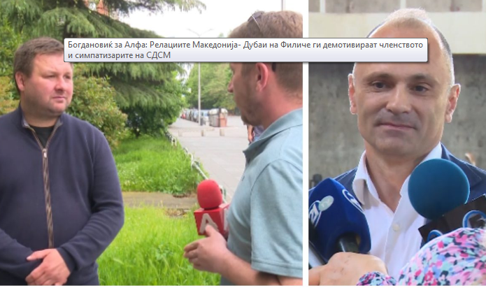 -Ако се пробува тоа да се ескивира во јавноста изгледа навистина незгодно. И на крајот само се потврдува еден факт, тоа е дека луѓето кои што моментално се во раководството на СДСМ мора да сфатат дека такви работи не треба да се случуваат, бидејќи влеваат недоверба. Тие некои случувања на релација Македонија- Дубаи гледаме дека не влеваат волја и кај членството и кај симпатизерите и гласачите дека нешто ќе се промени, изјави Богдановиќ.