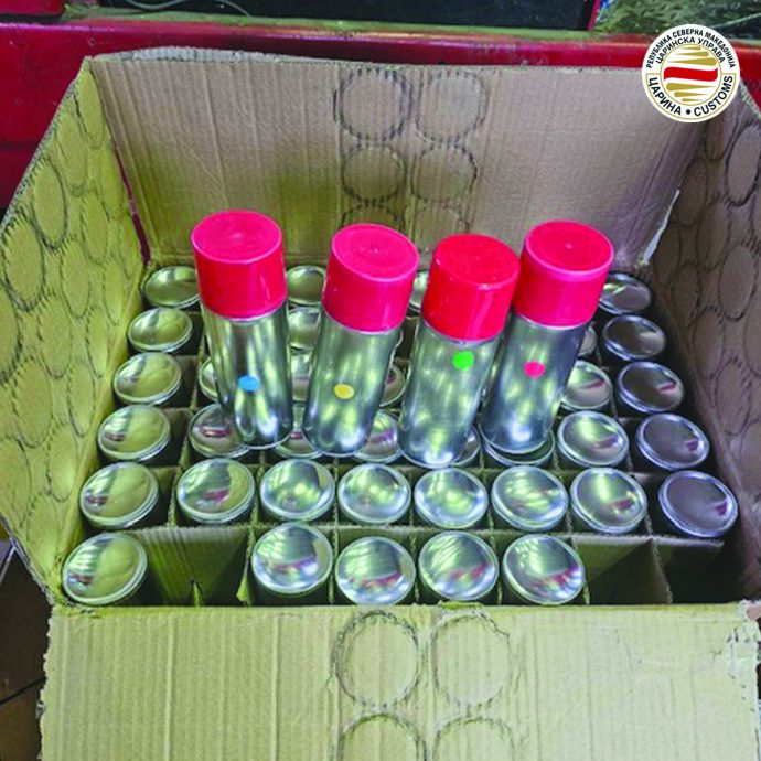∙Производи за сценски ефекти (100 пакувања од 200 грама композитен титаниум за сценски ефект и 144 садови со течност за огнен ефект) се пронајдени при контрола на збирна стока која била со потекло од Кина, а наменета за увозник од Скопје. Стоката била пријавена за увозно царинење во царинската испостава Гевгелија и истата не била опфатена во царинските документи.