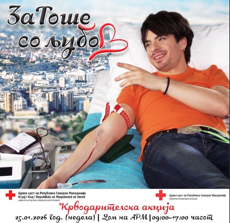 Црвениот крст на град Скопје и Општинската организација на Црвен крст Гази Баба ги повикуваат сите хумани граѓани да учествуваат во оваа крводарителска акција и заедно, во духот на Тоше Проески, да покажеме дека хуманоста живее.