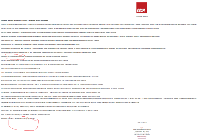 Аман, решете се бе “нови дечки“ (нови ко ланскиот снег), не можете да пишувате „Овој потег во Северна Македонија само го потврдува Орбановиот план да го прошири своето влијание на Балканот“, за по тресење едно чудо глупости во следните 7 реда срочите „ Нема да дозволиме нашата земја да се претвори во сателит на авторитарни режими. Борбата за праведна и слободна Македонија продолжува!“. Не оди пустото, или сте за Македонија, или сте за она на „С“. Договорете се, аман. Ова не е дали сте за Филипче или за Заев, тоа ви е едно те исто…