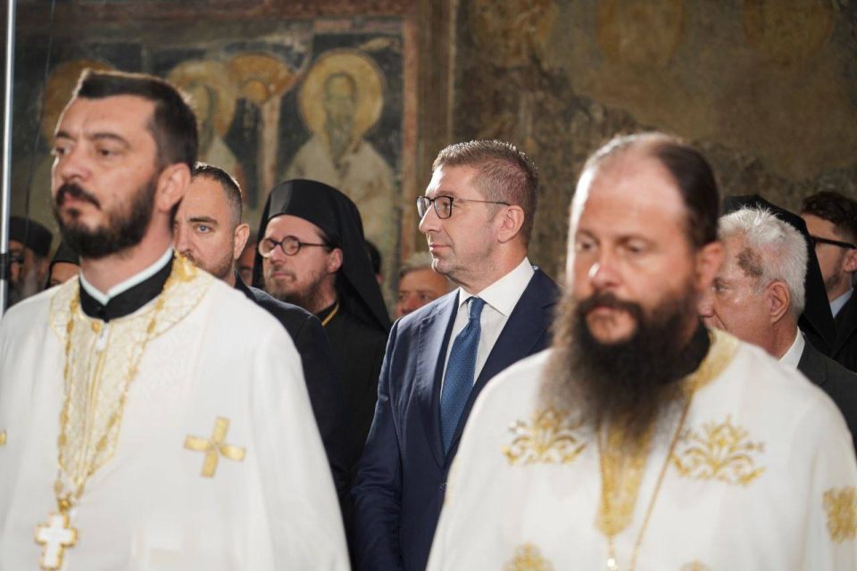 Премиерот Христијан Мицкоски, денеска во Соборниот храм на охридските архиепископи „Света Софија“ во Охрид, присуствуваше на епископската хиротонија на архимандритот Георгиј и негово устоличување на тронот на Дебарско-кичевската епархија.