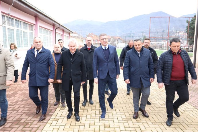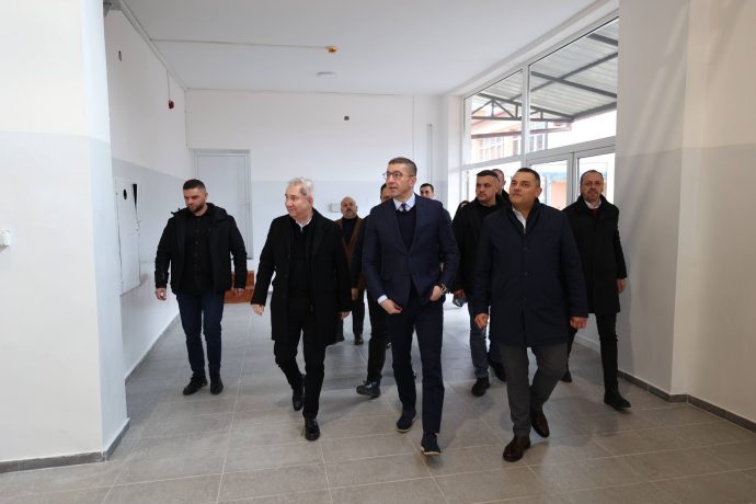 Христијан Мицкоски во посета на реконструираната спортска сала во Кратово.