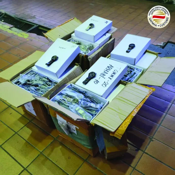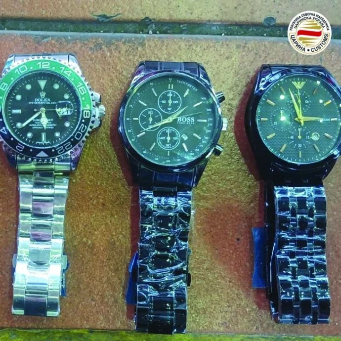 Вкупно 1.158 парчиња часовници со потпис на заштитени трговски марки „Ролекс“, „Бос“, „Армани“ и „Томи Хилфигер“ се запленети при контрола на стока пријавена за транзит на граничниот премин Богородица. Случајот е откриен од мобилен царински тим, кој поради сомневање изврши детален преглед, при што се пронајдени часовници чија пријавена вредност согласно фактура издадена од фирма од Кина изнесува 60.852 денари. Поради основано сомневање за повреда на право од интелектуална сопственост, стоката е задржана, при што е започната постапка за утврдување на оригиналноста на производите, информираат од Царинската управа.