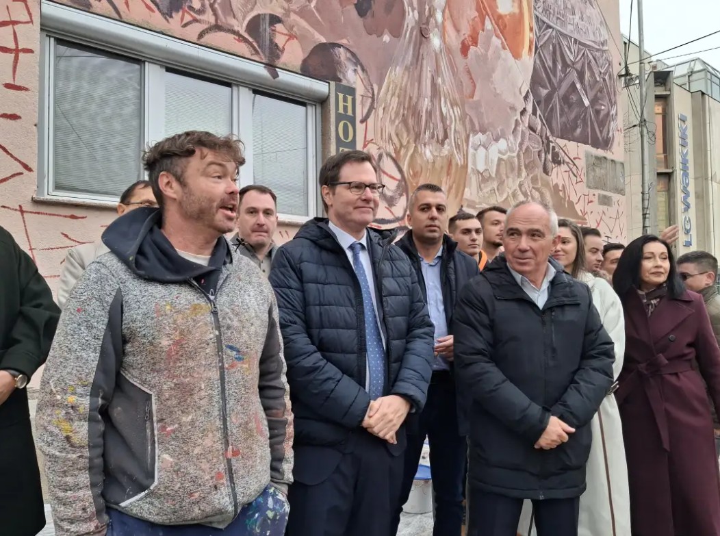 Амбасадорот на Австралија за Македонија Питер Трасвел заедно со својот домаќин, градоначалникот Тони Коњановски, денеска во Битола промовираа мурал изработен од австралискиот уметник Финтан Мегеј.