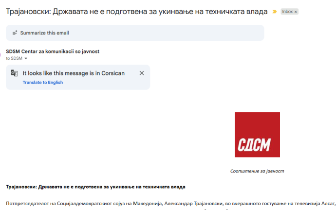 „Трајановски: Државата не е подготвена за укинвање на техничката влада“ – ова е насловот на текстот од прес-конференцијата на нивниот потпретседател и ултра-лузер на последните локални избори како кандидат на СДС за Општина Аеродром.