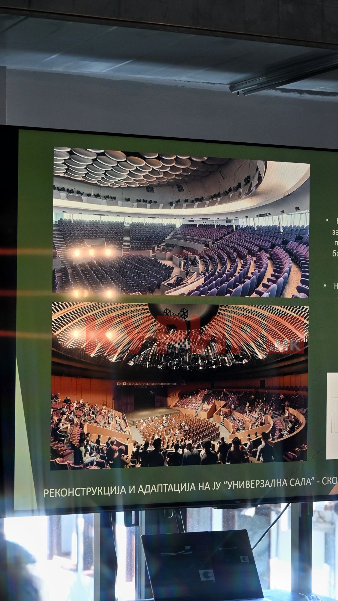 – Намален е бројот на редови за да се зголеми конфорот на публиката и да се задоволат безбедносните параметри во случај на евакуација и ПП. Предвидени се околу 1.200 седишта, наместо 1.500 колку што претходно имала салата, додаде тој.