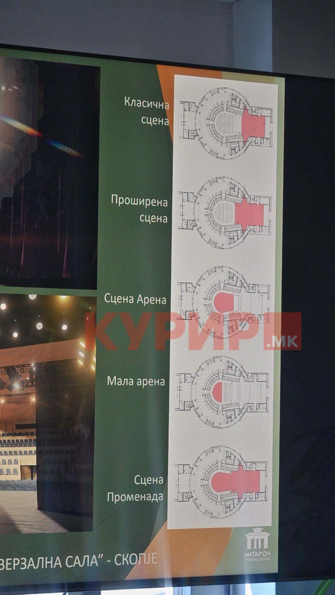Притоа информираше дека е изработена нова просторна акустика со вклучени техничко – технолошки системи – hvac, сценска техника-механика, лед осветлување и аудио – видео и електрични инсталации.