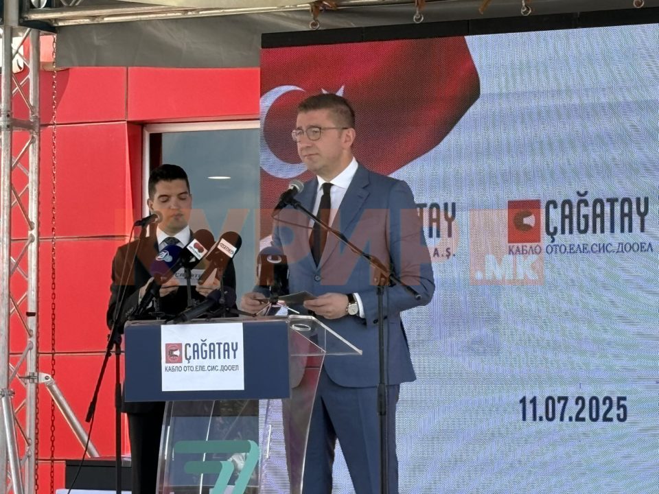 Премиерот Христијан Мицкоски денеска присуствува на поставување камен-темелник на новата фабрика на турската компанија „Чагатај Кабло“ во ТИРЗ Скопје.