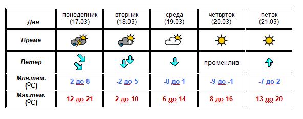 Утре и во понеделник времето ќе биде променливо облачно и нестабилно со пороен дожд, грмежи и засилен ветер.