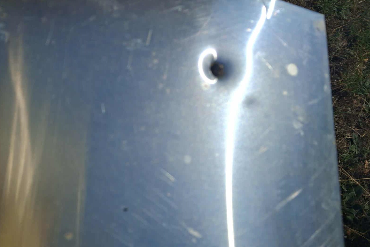 Капакот е целосно пробиен, а дополнително куршумот пробил и една плоча пред да застане во рамката.