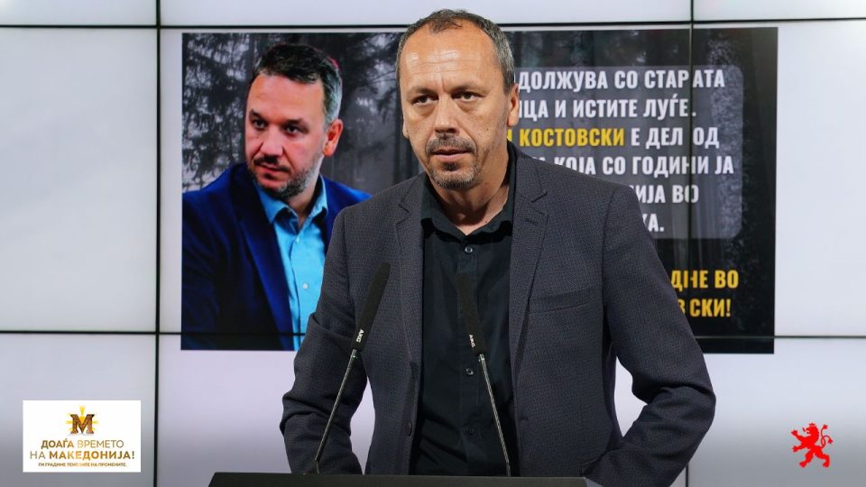 Потсетуваме на сериозниот преседан што го направи Костовски, како директор на Службен весник, со објавувањето на Законот за двојазичност без потпис на Претседателот на Републиката. Со тоа директно постапил спротивно на Уставот и законите на државата. Оваа неуставна постапка резултирала со кривична пријава. Исто така, постојат основани сомненија дека за да обезбеди поддршка за т.н. француски предлог, тогашниот министерот Бујар Османи ја вработил сопругата на Костовски во МНР. Ова претставува класичен пример на тргување со влијание и политички пазар. Мора да потсетиме за инцидентот од 2017 година, кога со 1.47 промили алкохол во крвта, Мартин Костовски физички нападнал учесник на протестите „За заедничка Македонија“. За ваквото однесување, кое е срамно за секој граѓанин, а не пак за јавна личност, поднесена е кривична пријава за насилство. Многу важно, кумановци заслужуваат одговор, како е можно со чиновничка плата од 50 до 60 илјади денари, Мартин Костовски да започне изградба на зграда во центарот на Куманово? Градбата е стопирана од градежната инспекција поради сериозни неправилности. Дополнително, неговото поставување за претседател на ОО СДСМ во Куманово токму од Заев, веднаш по неговото доаѓање на лидерската позиција во 2013 година, е уште еден доказ дека вистинскиот лидер на СДС е Заев, а не Венко Филипче, кој само формално ја носи титулата претседател. Каков капацитет поседува Костовски кажува и фактот дека во 2021 година, кога по дебаклот на локалните избори и на самиот Зоран Заев му стана јасно дека треба да се повлече од лидерската позиција во СДС, тој започнува акција за собирање на потписи за поддршка на Зоран Заев да остане претседател. И конечно, во кумановската чаршија за Костовски велат едно, познат е по семејни вработувања и згрижување на блиски лица. Без резултати. Без дела. Само слепа партиска послушност, лични интереси и џабе потрошен четиригодишен пратенички мандат, по кој и понатаму ужива финансиски привилегии преку апанажа, истакна Петрушевски.