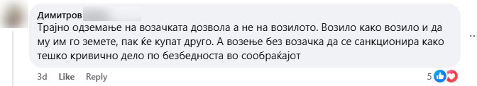 Како што појасни, во нашата држава, при сообраќајна несреќа со смртни последици, имаме предвидена казна затвор од четири до 20 години, во Словенија казната е од една до 12, во Хрватска од три до 15, Германија до десет, а во Србија од пет до 15 години затвор, што значи дека проблемот не е во предвидените казни од аспект на строгост бидејќи тие се едни од најстрогите во Европа.