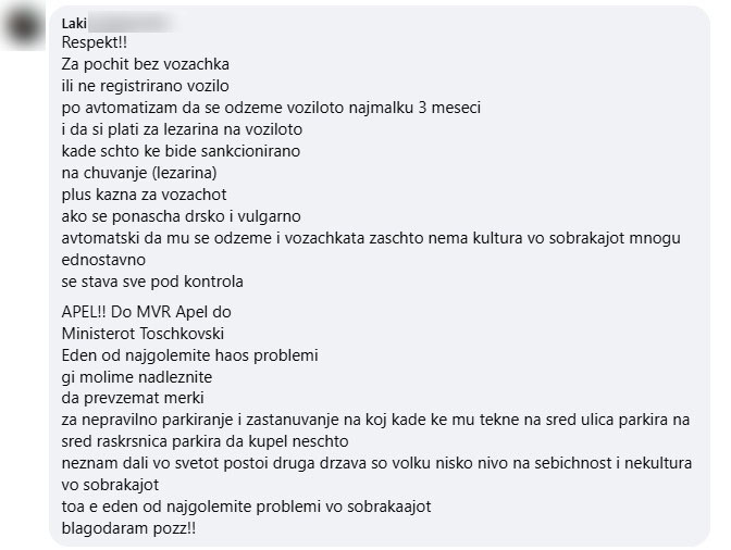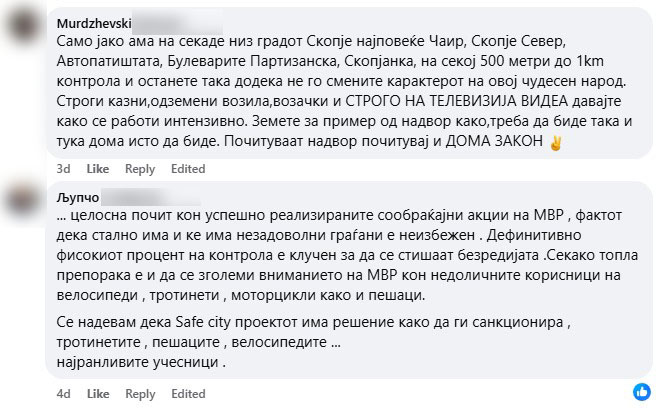 Граѓаните ја поздравуваат оваа активност на МВР и даваат полна поддршка. Дел од нив на социјалните мрежи пишуваат дека само удар по џеб може да ги, како што велат, опамети луѓето. Други бараат засилени контроли од страна на полицијата во сообраќајот да има и во другите градови, не само во Скопје.