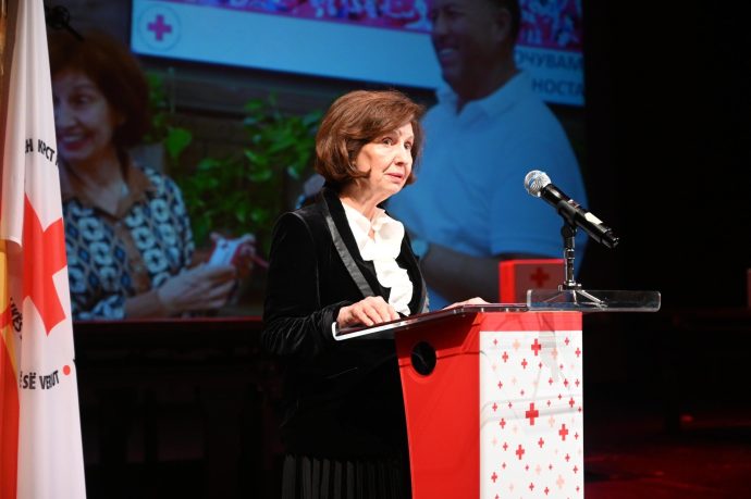 -Сте се запрашале ли, зошто една од првите одлуки на асномска Македонија било формирањето на Црвениот крст на Македонија? Зарем новоформираната држава немала погорливи прашања на дневен ред, како разурнатата инфраструктура и индустрија, високото ниво на неписменост и сеприсутната сиромаштија? Зарем немало поитни закони што требало да се донесат или поважни институции што требало да се воспостават основоположниците на асномска Македонија биле свесни дека ниту најдобрите закони, сами по себе, не се доволни за да изградат чувство на заедништво и на солидарност. Со закон може да се регулираат надворешните дејствија, но не и внатрешните мотиви на луѓето. Со закон можете да санкционирате лошо поведение, но не можете да создадете пожртвувани луѓе. Бидејќи човековото срце чука според ритамот на многу поразличен, етички закон на хуманоста којашто ги поврзува луѓето од различни вери, светогледи и епохи, истакна претседателката.