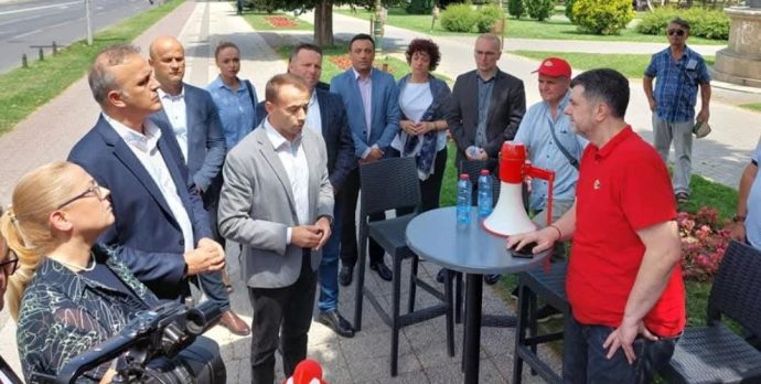 Тој потсети дека претставници на партијата во периодот од 2020 до 2024 година учествувале на протести и средби со синдикалните претставници, нагласувајќи дека тогашното барање било линеарно зголемување од 2.806 денари по вработен.