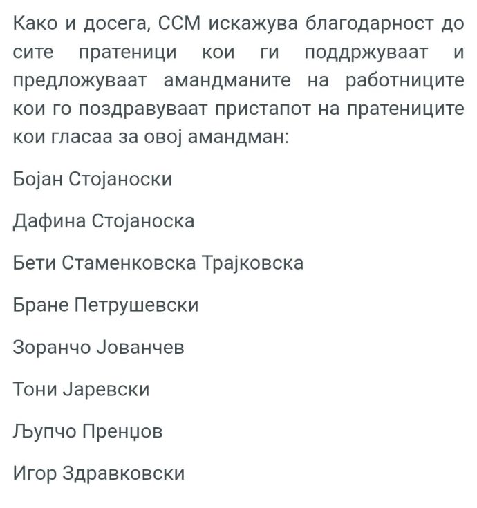 Пратеникот оцени дека разликата меѓу периодот кога партијата била во опозиција и сега е во тоа што, како што рече, „наместо ветувања на улица, се потпишуваат договори со рокови и гаранции“. Тој истакна и дека минималната плата треба да се договара во рамки на Економско-социјалниот совет, со учество на синдикатите и работодавачите.