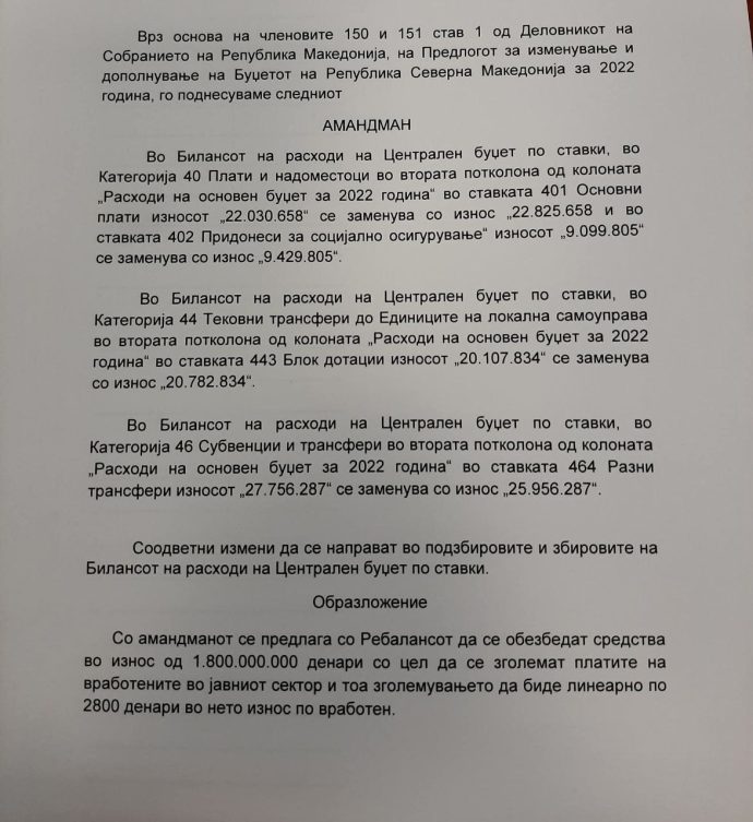 Тој потсети дека претставници на партијата во периодот од 2020 до 2024 година учествувале на протести и средби со синдикалните претставници, нагласувајќи дека тогашното барање било линеарно зголемување од 2.806 денари по вработен.