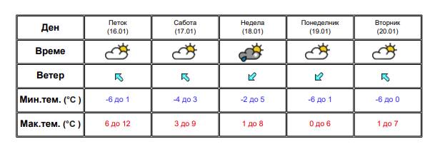 Во петок ќе се задржи стабилно и потопло време, со појава на утринска магла по котлините, а за време на викендот се очекува зголемена облачност и повремени локални врнежи од дожд, додека на планините ќе врне снег.