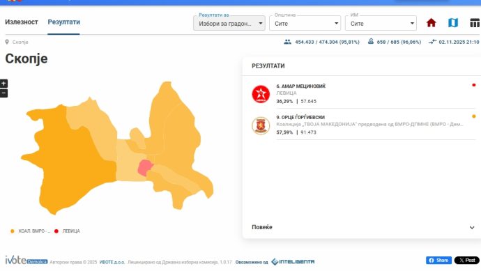 Кандидатот на ВМРО-ДПМНЕ Орце Ѓорѓиевски издвои убедлива победа во Град Скопје.