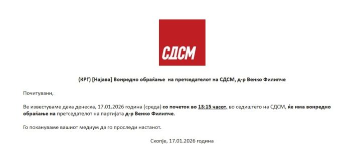 Во соопштение со наслов „ВМРО религиозни дезинформации“ опозициската СДСМ на чело со Филипче вели дека  ВМРО-ДПМНЕ дури и на голем верски празник се обидува да го исмее претседателот на СДСМ, поради неговиот поздрав на празникот Богојавление Водици.