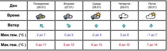 Пообилни врнежи и услови за ретки грмежи ќе има во понеделник, врнежите ќе продолжат и во вторник до вечерните часови. Во среда претпладне ќе биде претежно сончево, а во попладневните часови облачноста ќе се зголеми. Во текот на ноќта и во четврток, повторно ќе има врнежи од дожд и снег.
