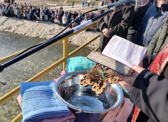Средношколецот Матеј Стојановски од село Младо Нагоричане го извади крстот од водите на реката Пчиња во село Драгоманце, општина Старо Нагоричане. По крстот скокаа триесетина верници од општината.