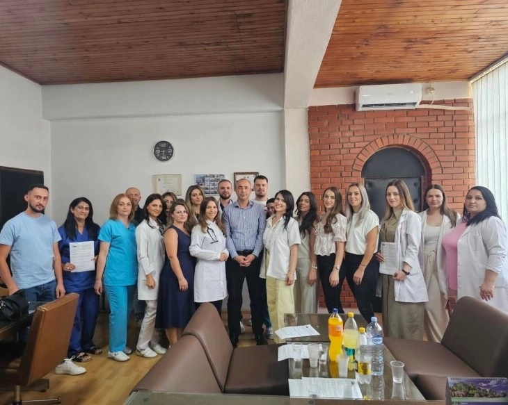 -Повеќе од задоволство и гордост за мене е, да се види насмевка на 19-те лица кои до сега работеа со договор на дело. Како никогаш досега поделени се толку решенија за работа во ист ден. Нема да бидат нескромен но ќе кажам дека она што беше примарно по преземањето на функцијата директор во нашата болница, денес стана реалност. Со ова значително го подобруваме и зајакнуваме капацитетот на болницата, во интерес на жителите од нашето подрачје. Честитки и успех на сите, рече Мерсим Колеци, директор на болницата.