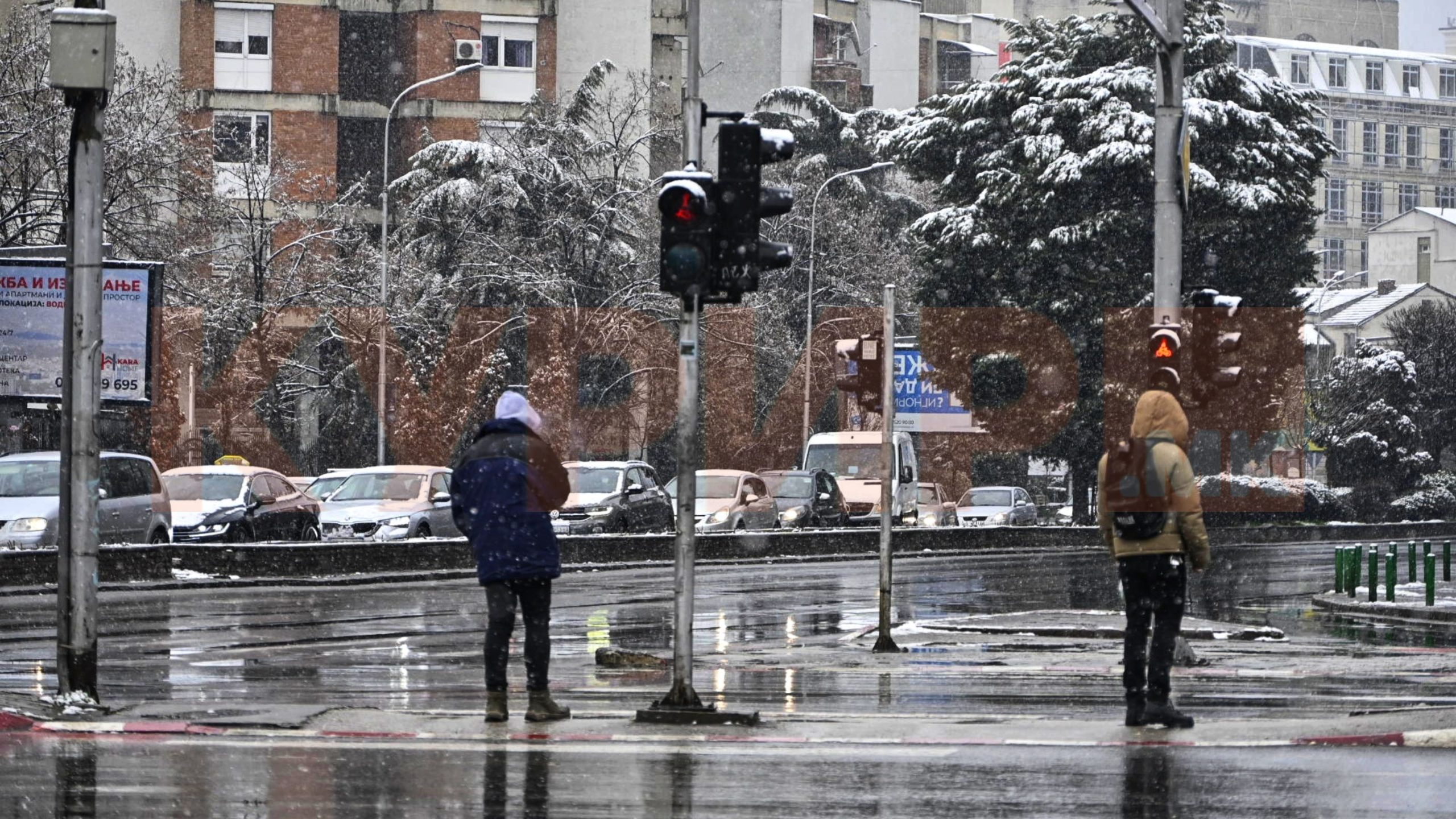 Големите снегулки паѓаа интензивно во раните утрински часови, создавајќи снежна покривка во градот.