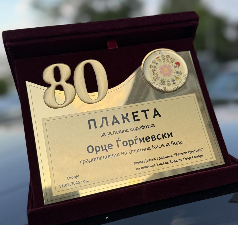 Детската градинка „Весели Цветови“ денес одбележа значаен јубилеј – 80 години од своето основање, со свеченост на која присуствуваа вработените, родителите, децата и градоначалникот на Општина Кисела Вода, Орце Ѓорѓиевски, како и пратеничката Бети Стаменкоска-Трајкоска и советници од Советот на Општината.