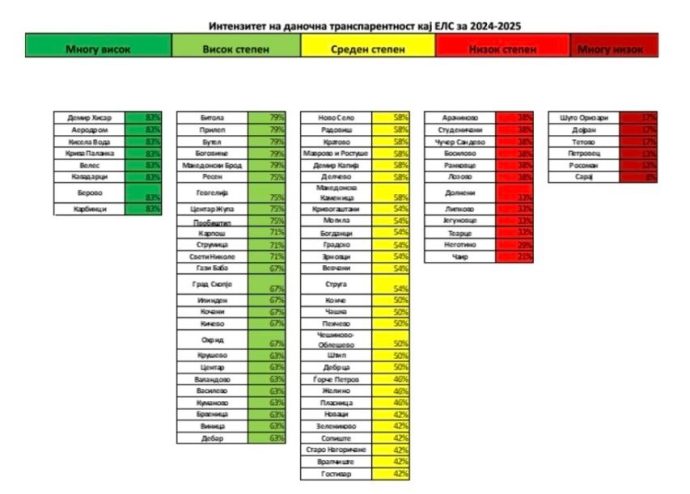 Според објавениот извештај, Кисела Вода се вбројува во групата на десет општини кои добиле максимален број индексни поени за буџетска транспарентност. Дополнително, истражувањето ја позиционира Кисела Вода и како една од општините со највисок степен на даночна транспарентност, благодарение на јасната и достапна комуникација со граѓаните за локалните даноци и постојаното објавување на релевантни информации.