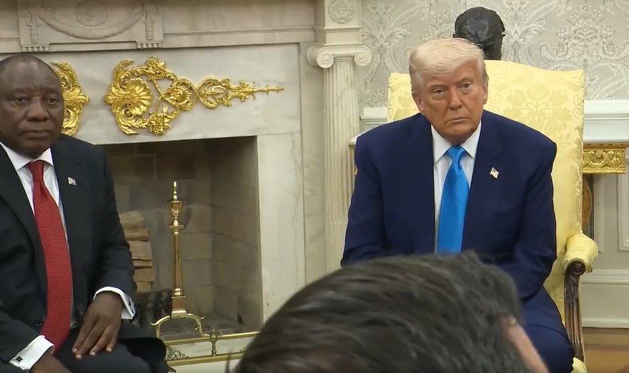 Јужноафриканскиот претседател Сирил Рамафоса, седејќи до Доналд Трамп во Белата куќа, денеска повика на „ресетирање“ на билатералните односи, кои се многу тензични откако американскиот претседател се врати на власт.