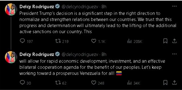 „Одлуката на претседателот Трамп е значаен чекор во вистинската насока за нормализирање и зајакнување на односите меѓу нашите земји“, рече Родригез во објава на платформата „X“.