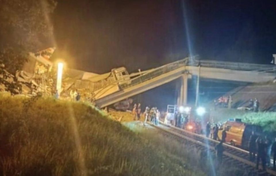 Дел од мостот се урна, а потоа падна врз воз што минуваше подолу, објави руските државни медиуми.
